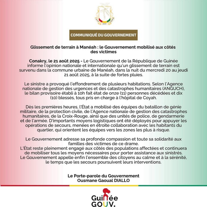 Home À LA UNE Tragédie à Manéah : Le gouvernement guinéen adresse ses compassions aux victimes...