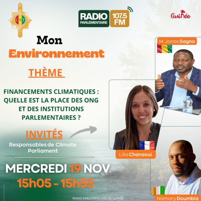 Le numéro de l’émission Mon Environnement du mercredi 19 novembre 2025 , sur la Radio parlementaire de Guinée, a mis en lumière un enjeu majeur : la mobilisation des financements climatiques et le rôle clé joué par les ONG et les institutions parlementaires.