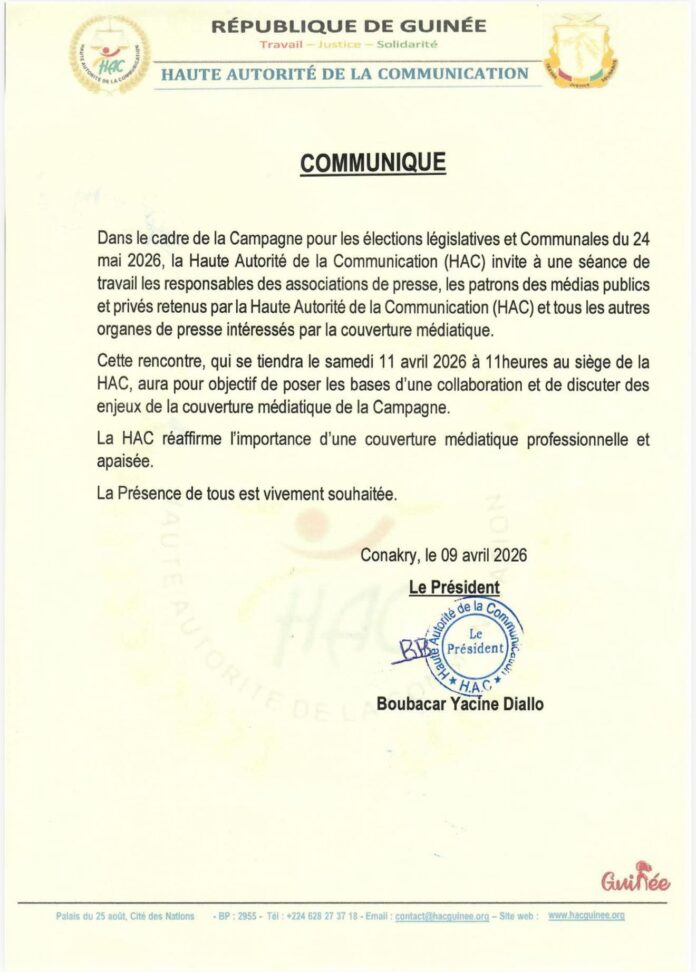 À LA UNEcommuniqué Couverture médiatique des élections du 24 mai : La HAC convie les patrons à une rencontre ( communiqué) By admin - 9 avril 2026 FacebookXPinterestWhatsApp Screenshot